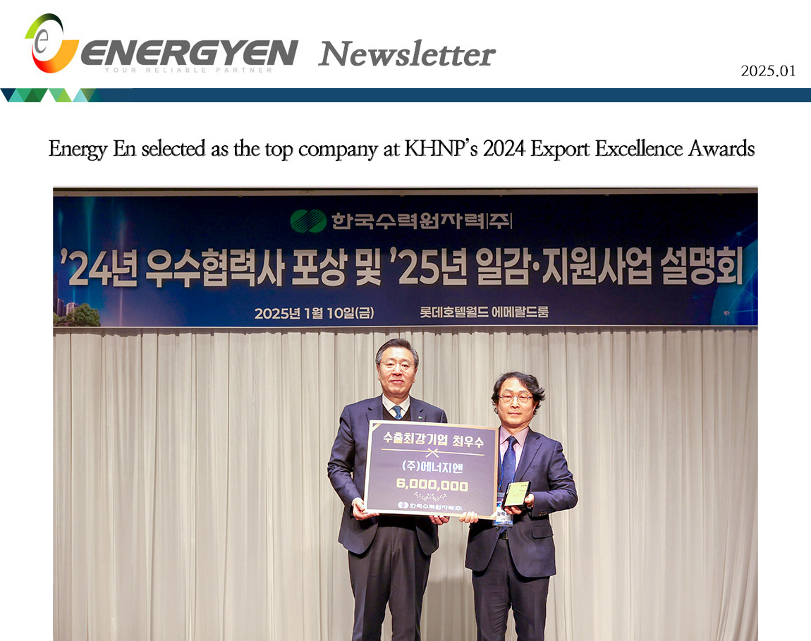 Energy En was selected as the top company at the “2024 Export Excellence Awards” hosted by Korea Hydro & Nuclear Power (KHNP).