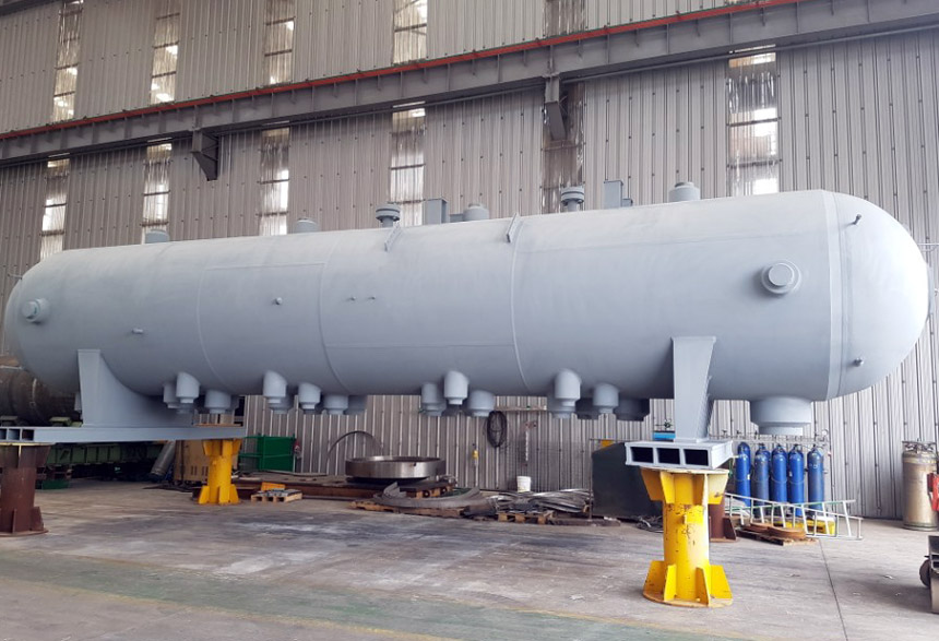 스팀드럼은 보일러의 상단에서 물/증기를 저장하는 곳입니다. 드럼의 수관에서 생성된 증기를 저장하고 증기/물의 혼합물에서 순수한 증기를 분리시키는 역할을 합니다.