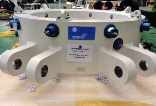 텐션링은 라이저 시스템과 인장 시스템 사이의 종단점을 형성하는 신축 이음 장치의 일부입니다.